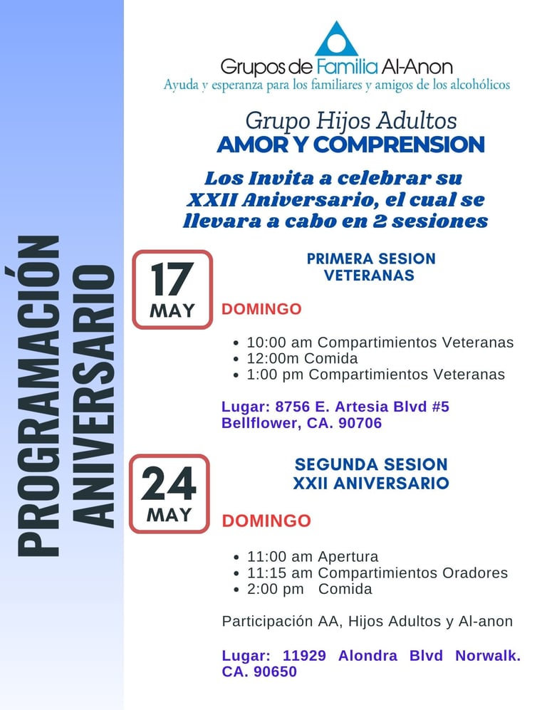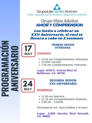 Los Grupos de Familia Al-Anon son una hermandad de parientes y amigos de alcohólicos que comparten sus experiencias, fortaleza y esperanza, con el fin de encontrarle solución a su problema común. Creemos que el alcoholismo es una enfermedad de la familia, y que un cambio de actitud puede ayudar a la recupeación.